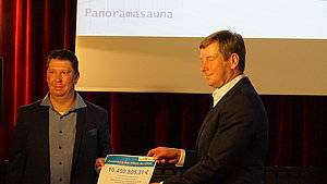 Staatssekretär Carsten Feller übergab dafür den Förderbescheid über rund 10,5 Millionen Euro aus GRW-Mitteln an den Bürgermeister der Gemeinde, Denis Wagner.
