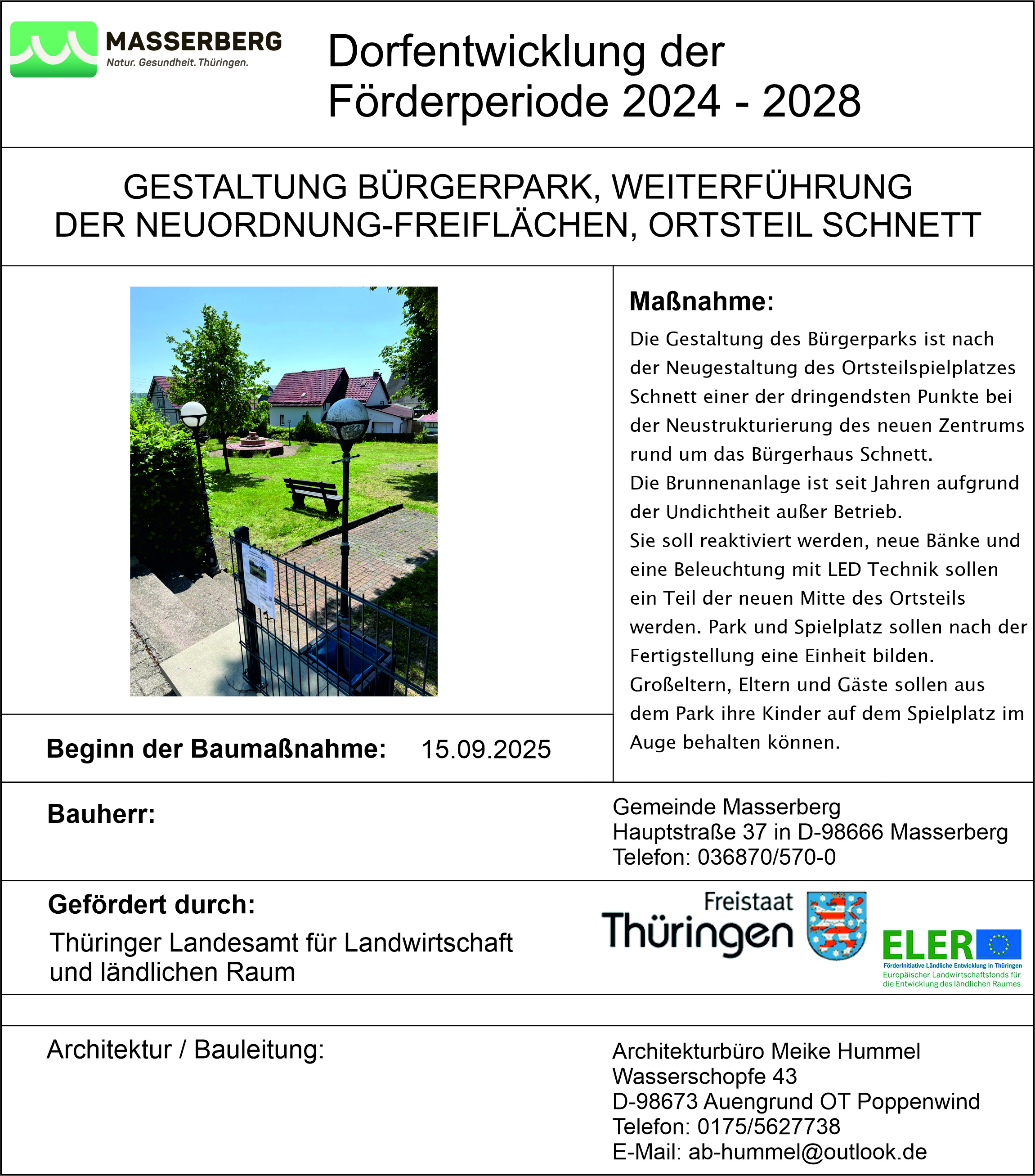 Gestaltung Bürgerpark, Weiterführung der Neuordnung - Freiflächen - Ortsteil Schnett