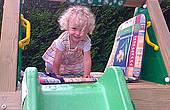 Im Jahre 1997 übernommen, wurden Gebäude und Grundstück komplett neu gegliedert und modernisiert. Seitdem wurden beständig diverse Verbesserungen vorgenommen. Es bietet Platz für 4 Personen. Die beiden Schlafzimmer sind mit Doppelbetten ausgestattet, eines davon mit Boxspringbett und en suite. So klein die Küche auch wirken mag, hat sich doch alles was den Urlaubshaushalt erleichtert: Mikrowelle mit Backofen, Geschirrspülmaschine, Kühl- Gefrier- Kombination, Spüle, Kaffeemaschine usw. Draußen gibt es eine Sitzgruppe und einen Kinderspielplatz sowie einen Natursteingrill, der den Rennsteigsteinen nachgestellt ist.