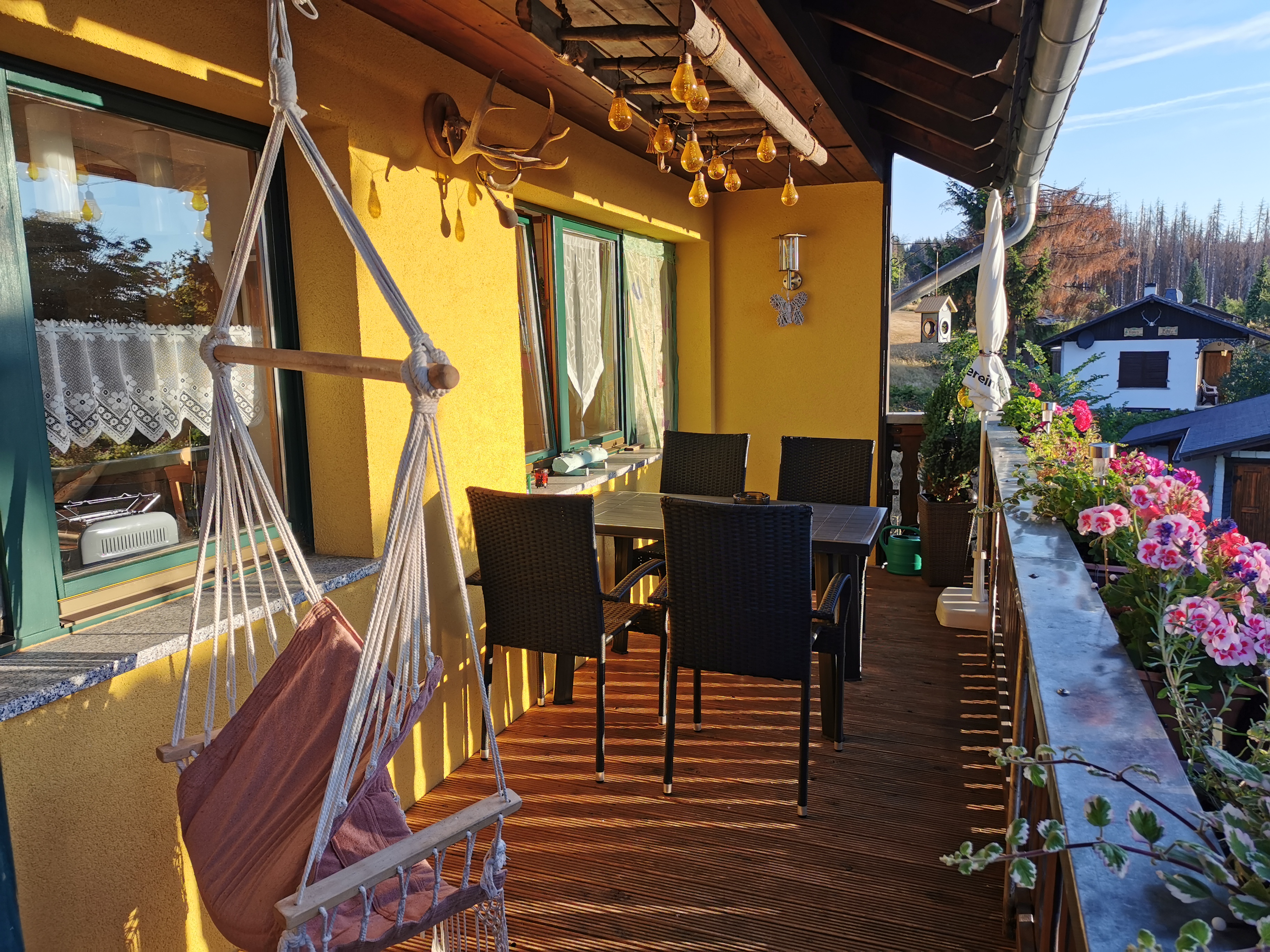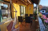 2 Schlafzimmer (1 Doppelbett, 1x2 Betten), großer möblierter Balkon, Terrasse mit Pavillon, Grill, Spielplatz mit Rutsche und Sandkasten im großen Garten. Parkplatz finden auf dem Grundstück.