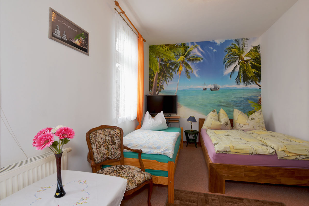 Unsere Zimmer sind mit Sat-TV und Holzmöbeln der guten alten Zeit ausgestattet. In unserer Gästeküche stehen Ihnen Kaffeemaschine, Wasserkocher, Brotschneidemaschine, Kühlschrank und Geschirr jederzeit zur Verfügung.